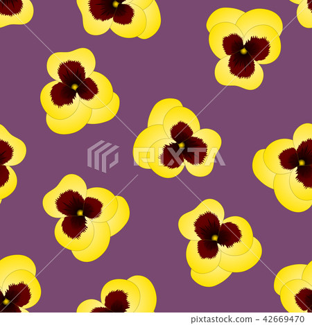 Yellow Pansy Flower On Purple Background - Stock Illustration [42669470